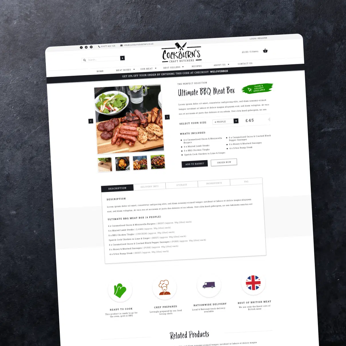 The project consisted of a rebrand and a brand new ecommerce website to replace the previous one. The website has some extra functionality such as subscription meat boxes and automated despatch and invoice printouts for the store staff.