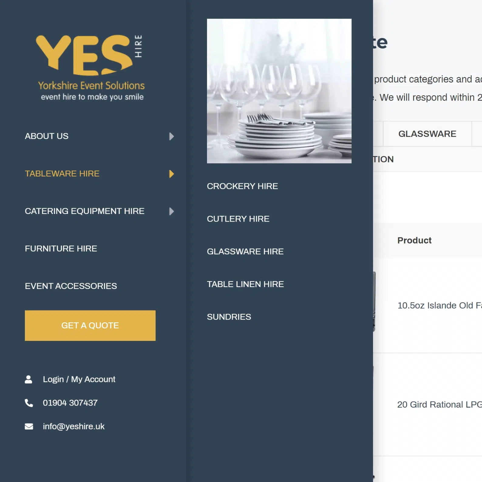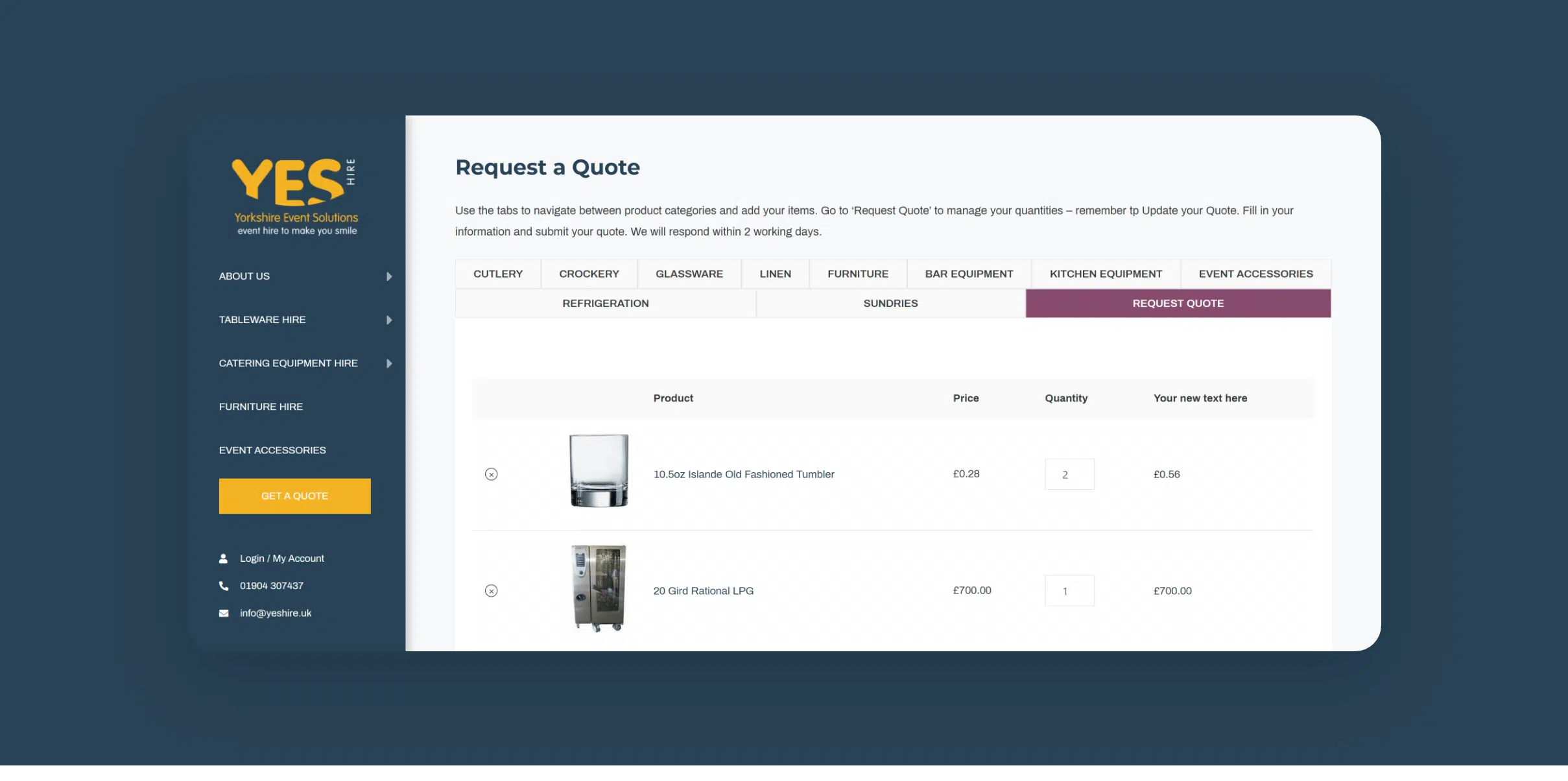 Yes Hire are an events equipment hire company where you can hire anything and everything for a wedding or corporate event